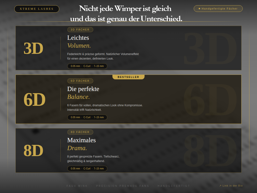 Zu Wimpernverlängerung ProduktenErlebe die Faszination langer, voluminöser Wimpern mit Xtreme Lashes! Was als Vision für atemberaubende Augenblicke begann, ist heute eine weltweit führende Marke für professionelle Wimpernverlängerung – und begeistert Kundinnen in über 50 Ländern mit Qualität, Präzision und Luxus.